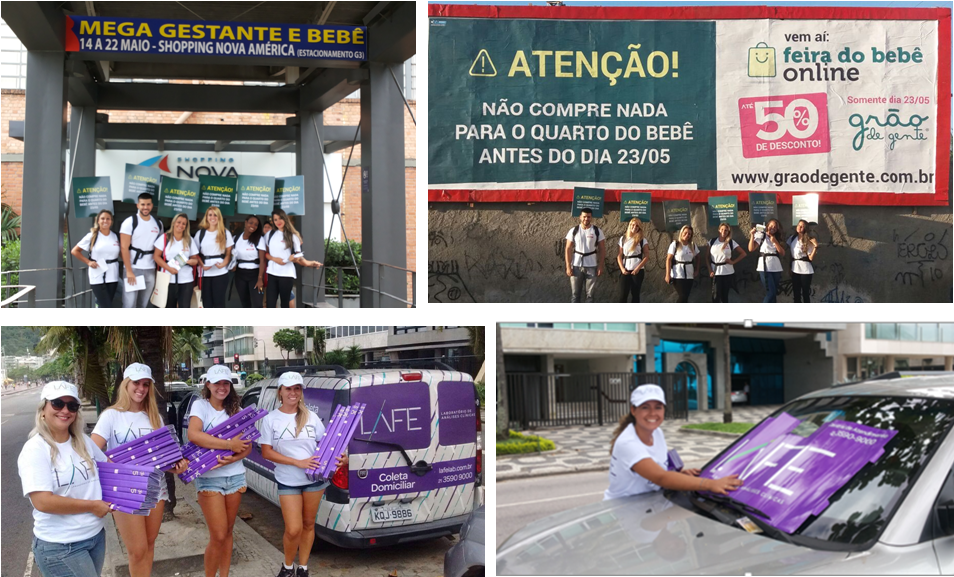 Somos especializados em ações de guerrilha, promoção de vendas, folheteria, panfletagem, distribuição de folhetos, disponibilização de equipe para eventos. Temos uma equipe multidiciplinar que está preparada para auxiliar nossos clientes desde o momento do planejamento até a finalização da campanha, com entrega de relatórios e "checkins" fotográficos